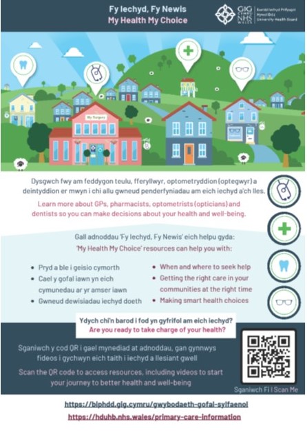 Hywel Dda University Health Board has created resources, including videos called “My Health, My Choice”, to provide people with easy-to-understand information about accessing Primary Care in their communities.